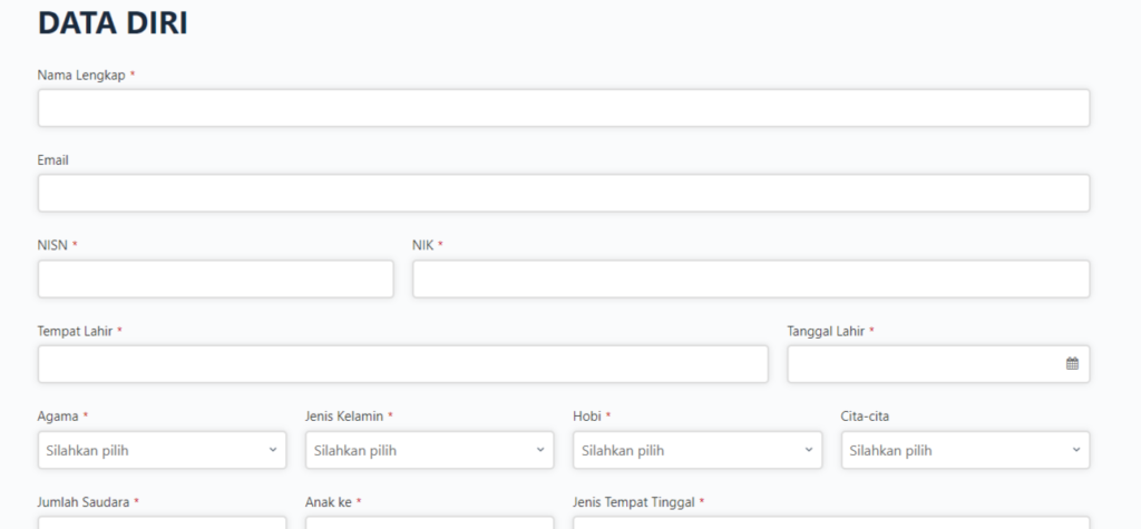 Perhatikan keterangan form yang wajib diisi, jika label ditandai dengan tanda * seperti gambar di atas, misalnya NIK*, maka NIK wajib diisi.